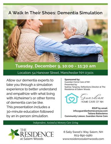 "A Walk in Their Shoes" is a dementia simulation designed to give participants a hands-on experience of what life is like for someone living with dementia. During this interactive simulation, you’ll navigate challenges related to vision, hearing, and dexterity, gaining deeper understanding and increased empathy for those living with this challenging condition. Refreshments will be provided.