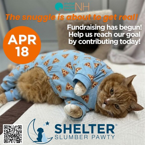 Fundraising is officially underway for the Animal Rescue League of New Hampshire’s (ARLNH) 2nd Annual Shelter Slumber Pawty, and the community is invited to join the fun while making a difference for animals in need. Think back to the best parts of childhood slumber parties: staying up late, sharing snacks, playing games, and laughing with friends. Now add in adorable, tail-wagging (and purr-filled) companions to the mix. On Saturday, April 18, 2026, from 12:00 p.m. to 8:00 p.m., ARLNH in Bedford will host this feel-good, eight-hour “pawty,” part of the nationwide National Shelter Slumber Pawty initiative, bringing shelters together to raise funds and awareness for homeless pets.